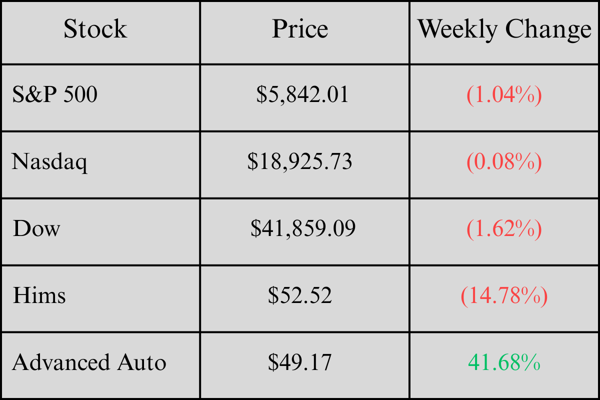 Markets ended lower this week as rising Treasury yields pressured equity valuations. All major indices fell this week, with tech showing some resiliency. Elevated yields continue to weigh on rate-sensitive sectors as investors reassess risk and uncertainty around Fed policy.